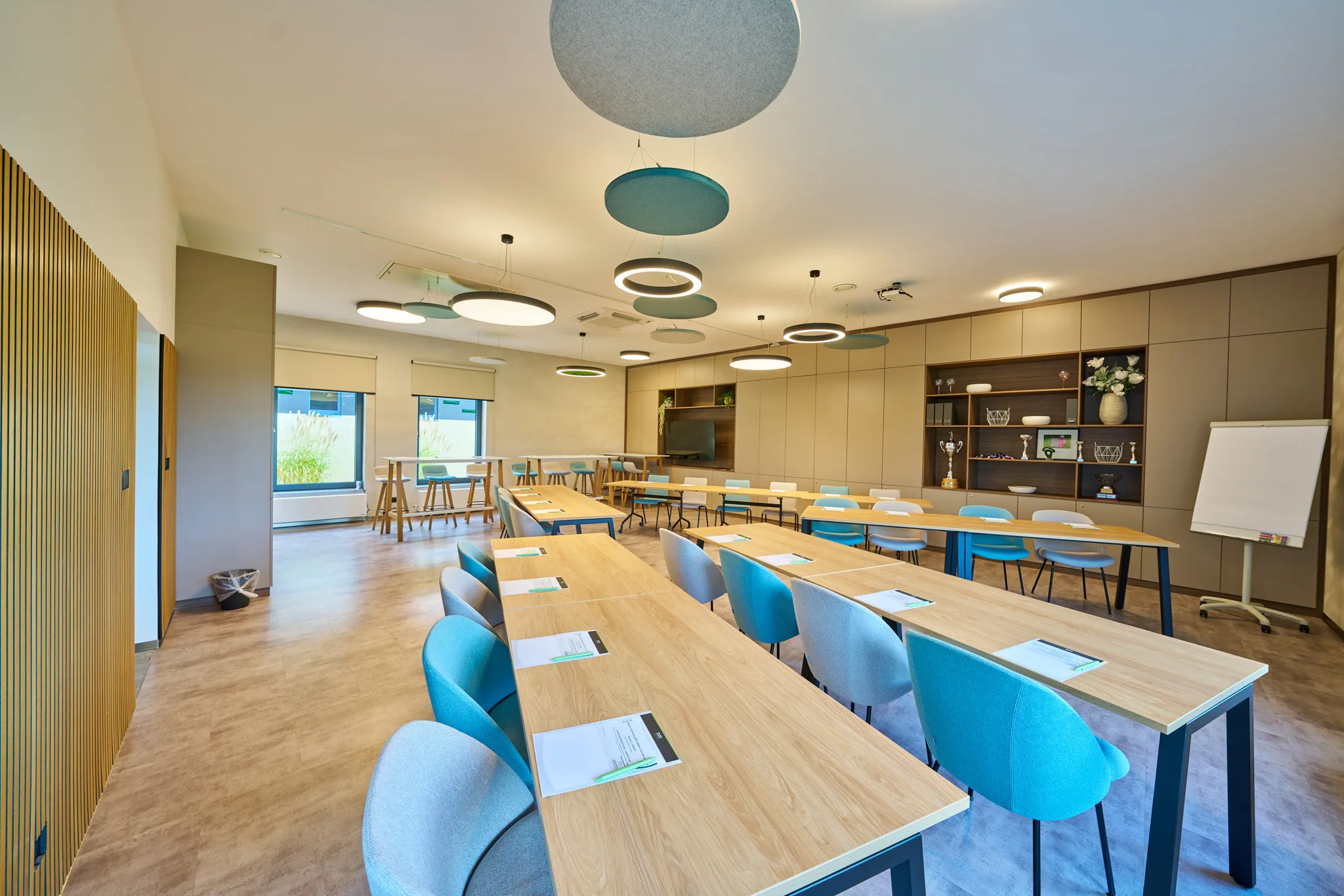 Ozvučení, projektor, plátno, Wi-Fi a možnost přizpůsobit prostor vašemu programu.